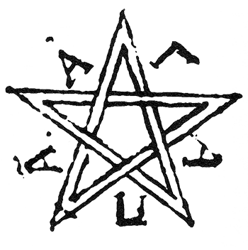 Το πεντάκτινο αστέρι ορίζεται ως σύμβολο του Ιησού, «φωτεινό αστέρι της αυγής» και ανεστραμμένο συμβολίζει την κάθοδο του Ιησού δηλ. την ενσάρκωσή του. Μια απεικόνιση, που εντοπίζεται από τον Έκχαρτ (Eckhardt), σε τοίχο εκκλησίας του Αγίου Ιωάννη στη Γιουγκοσλαβία χρονολογείται από τον ενδέκατο αιώνα[13].